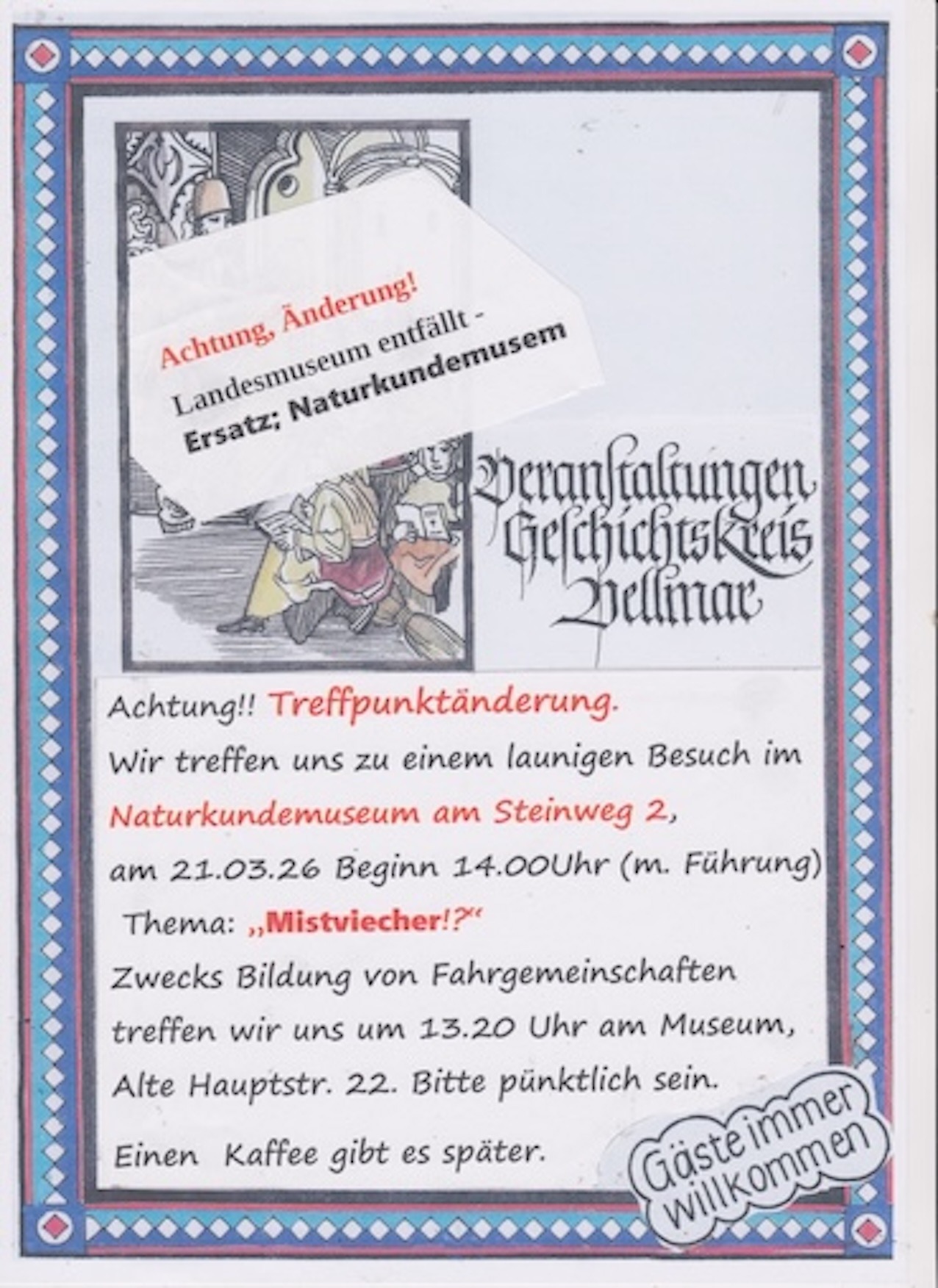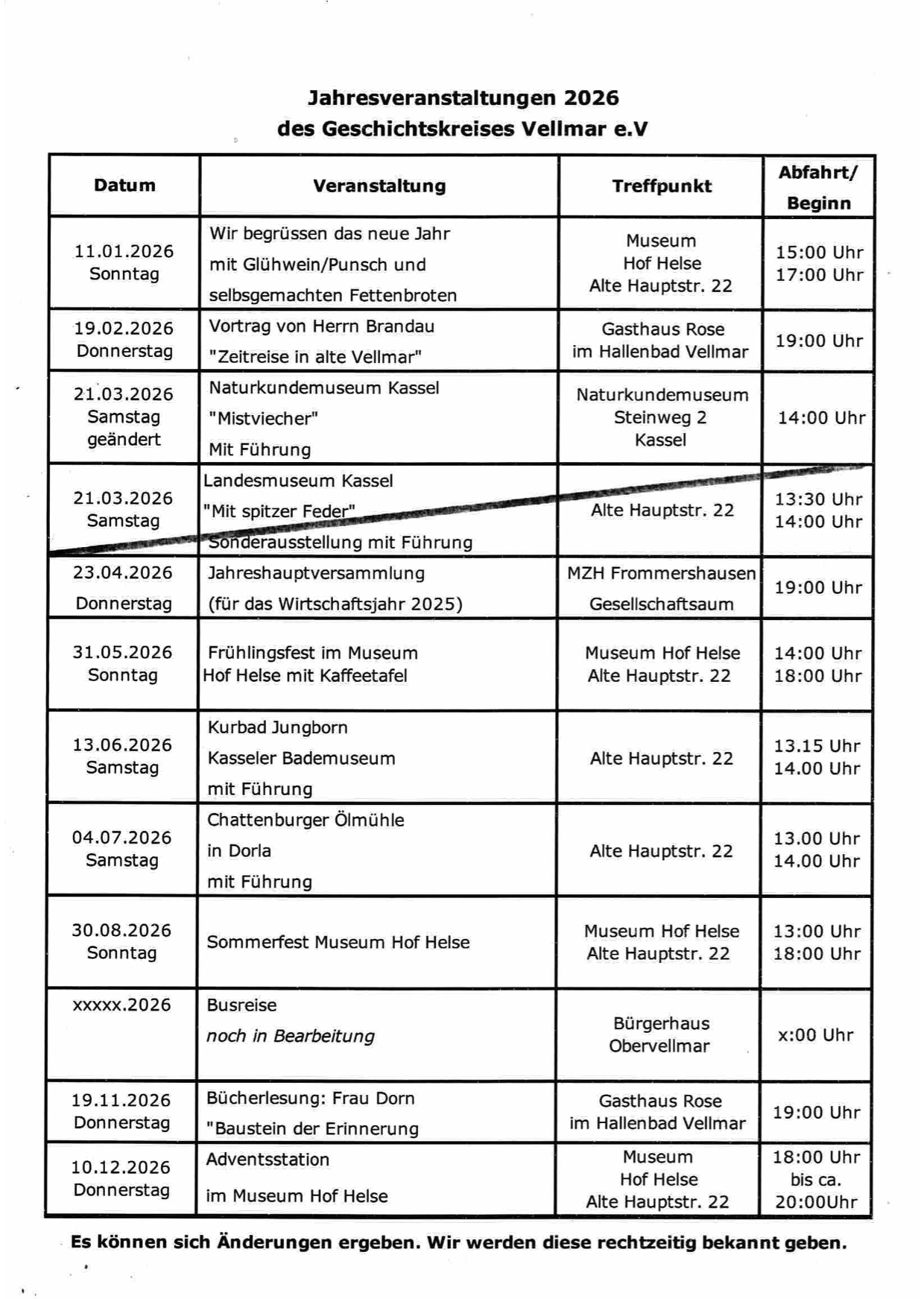 Hier finden Sie aktuelle Ankündigungen Den Veranstaltungskalender für 2026 finden Sie unterhalb den aktuellen Ankündigungen.